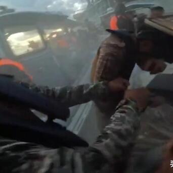 6月19日,菲律宾军方公开的画面,拍摄到了菲律宾海军特种兵如何为断右手大拇指的人员,做急救。其实右手拇指被夹断有点让人费解,因为正常的身体姿势应该是食指等,其他四指容易夹断才对。夹大拇指,这是菲律宾海军特种兵推中方海警船的时候,给夹了吧?右手这么扣着支撑身体,左手和半个身子探出去和咱们的人拉扯,结果菲律宾海军全副武装的特战队被我方海警战士,拿消防斧缴械了!菲律宾海军特种兵这可是拿着枪械,至少有7把AR-15美制突击步枪,被中方缴获,说是枪在出发前已经拆卸打包了。美制突击步枪是菲律宾海军送的补给品是吧,那更有理由挨揍了!建议制造一种带狼牙带铁刺的手套和护具甚至马甲服装,全身带獠牙,怎么滴都让对方心生恐惧。就目前菲律宾当局,菲律宾军方情况,从上到下,看不懂他们要干嘛。明明是菲律宾军人,偏偏要打扮成渔民,这就是不想动手吧,既然如此,为何要带枪?带枪,到时射击呀,不敢发射你带啥枪?从菲律宾总统到菲律宾军队,都自己要不清楚。菲律宾海军特种兵带枪等于夜路壮胆用的。开枪必须美国同意,因为只要开就是冲突等级。这次中方阻拦菲律宾海军船只运送物资,离非法坐滩仁爱礁的马德雷山号登陆舰,其实非常近了。如果菲律宾海军,菲律宾海警运输的物资接下来还面临着我方的拦截,不能送上去,菲律宾当局可能会开第一枪,引发小规模海上冲突。